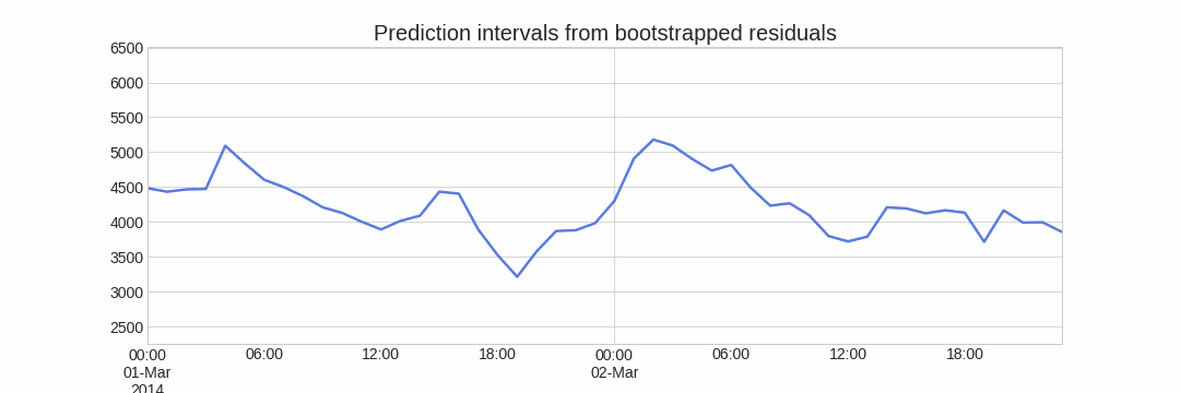 Prediction intervals based on bootstrapped residuals and recursive-multi-step forecaster.